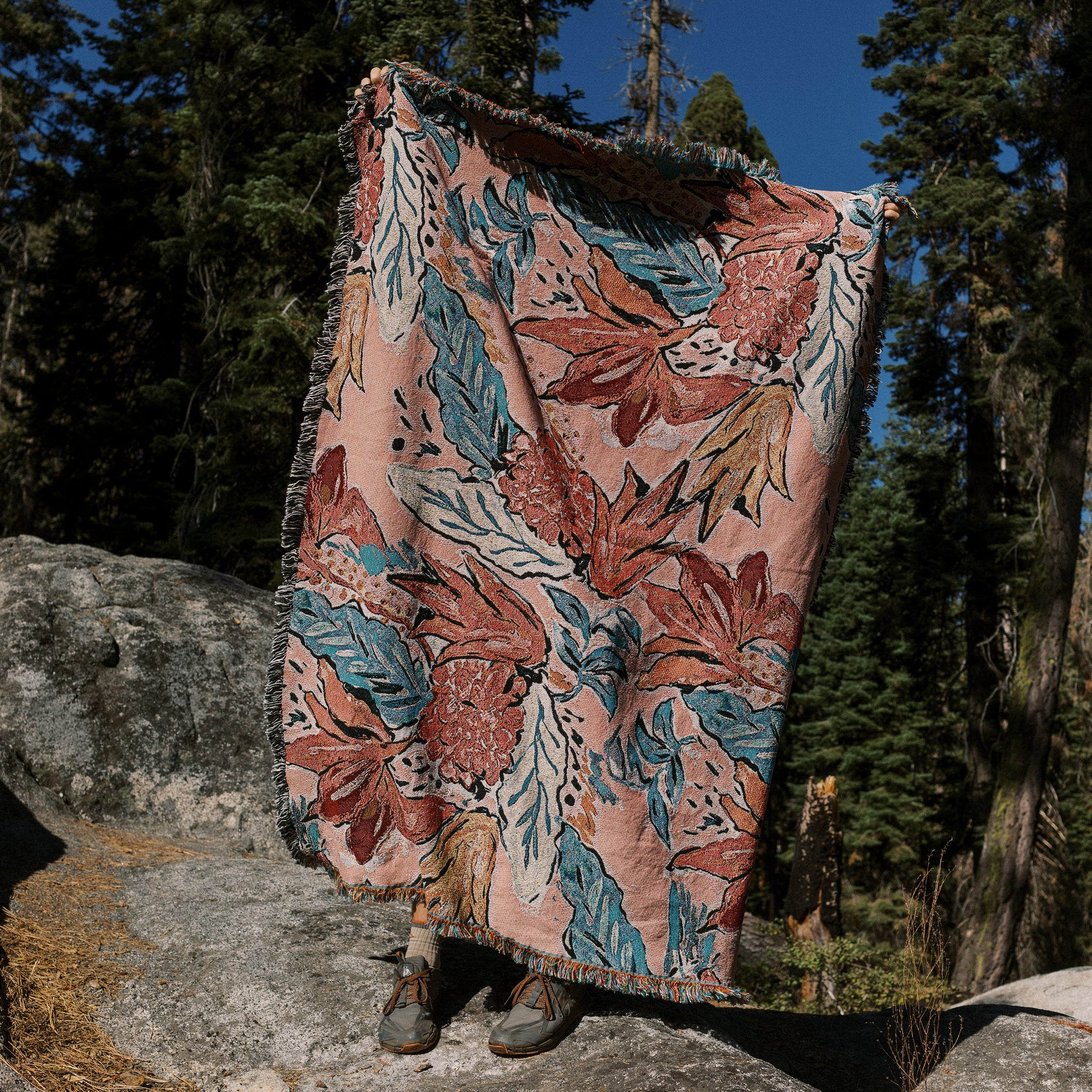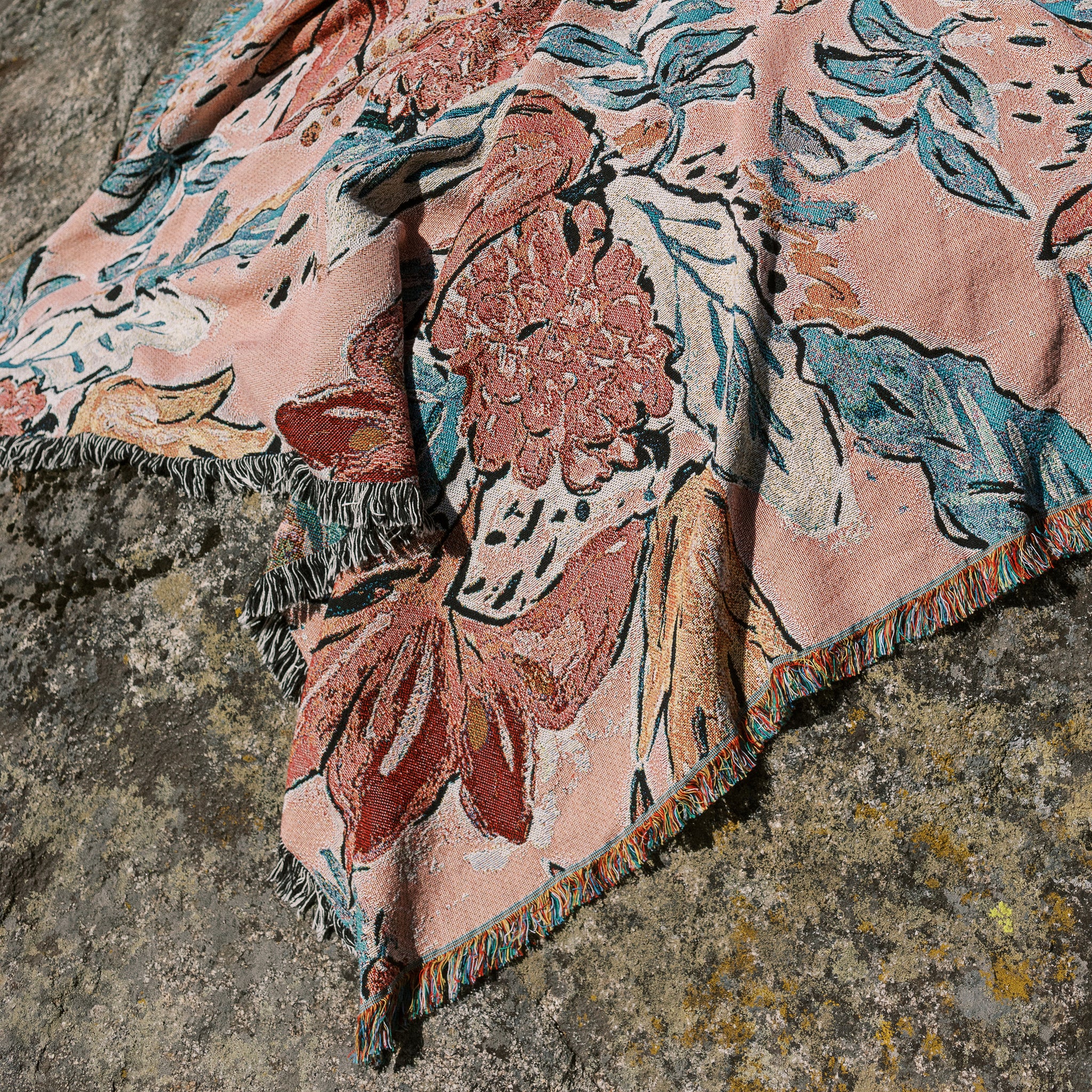 Our beautiful vintage-inspired floral pattern was hand drawn and is woven into the Big Throw from 95% cotton yarn - most of which is recycled. Each blanket is individually made to order by a family run mill in the USA. We only order exactly what we have sold, so waste is minimal. Any waste that IS created is remade into other textiles, and shredded scraps from their bins are sorted by colour and either woven back into yarn or used as stuffing or other non-woven textiles.